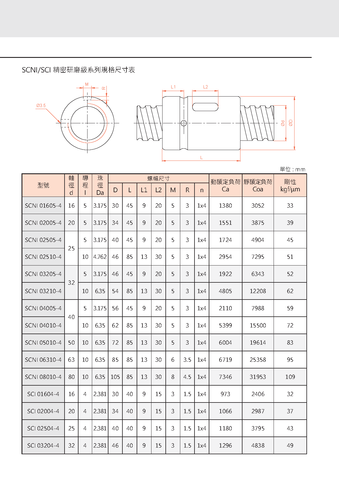 SCI SCNI系列精密研磨級(jí)滾珠絲杠