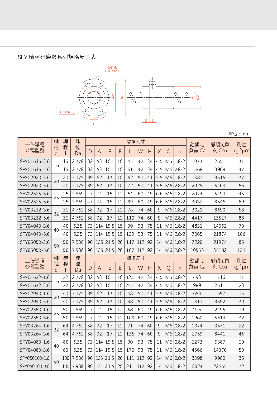 SFY系列精密研磨級滾珠絲杠